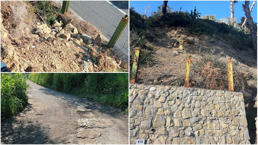 I consiglieri comunali hanno fatto sopralluoghi in particolare in Strada dei Pini in regione Collarina dove hanno trovato una situazione di potenziale pericolo dovuta ad uno smottamento di terra nonché alla mancanza di tratti di cordoli di protezione a valle e di ammaloramento della sede stradale con ferri a vista.