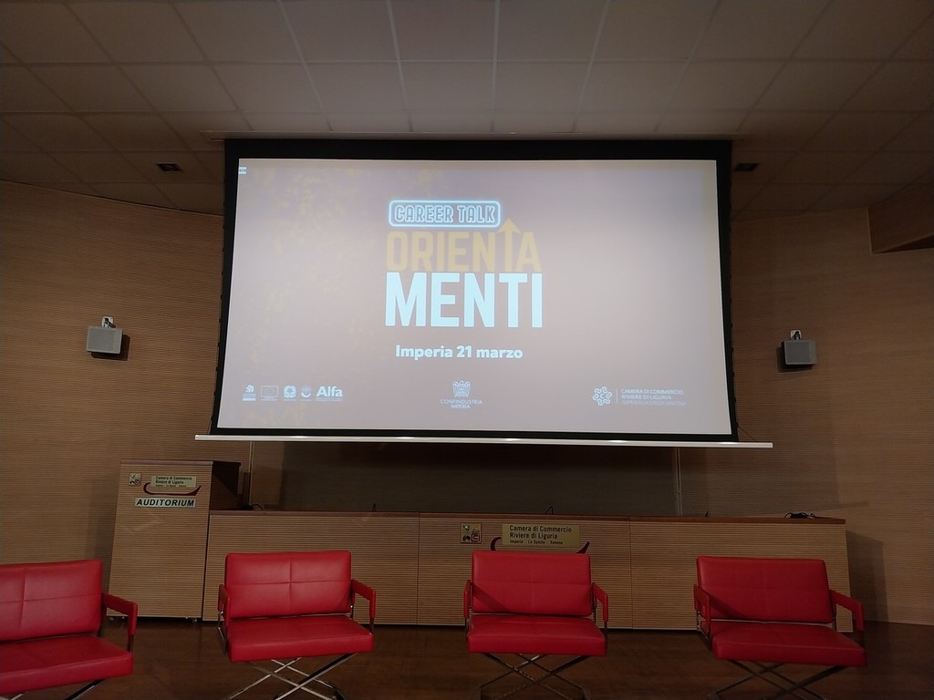 Una mattina di confronto e dialogo per oltre quattrocento studenti delle scuole superiori della provincia di Imperia che hanno partecipato al Career Talk di Orientamenti, nell'Auditorium della Camera di Commercio. Un evento organizzato da Regione Liguria, tramite Alfa (Agenzia regionale per il lavoro, la formazione e l'accreditamento), in collaborazione con la Camera di Commercio Riviere di Liguria e Confindustria Imperia.