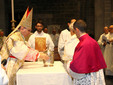 Il vescovo, inoltre, ha compiuto a l'antico rito dell'insufflatio, soffiando sull' olio da Consacrare.