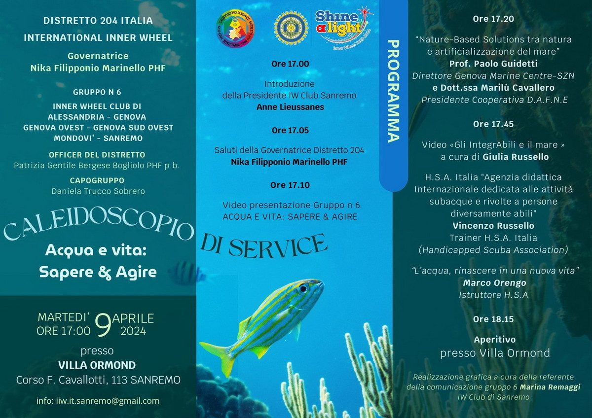 17.00. Presentazione del progetto ‘Acqua e Vita: Sapere & Agire’ dell’International Inner Wheel con la partecipazione dei club di Alessandria, Genova, Genova Ovest, Genova Sud Ovest, Mondovì, Sanremo, Villa Ormond (il programma)
