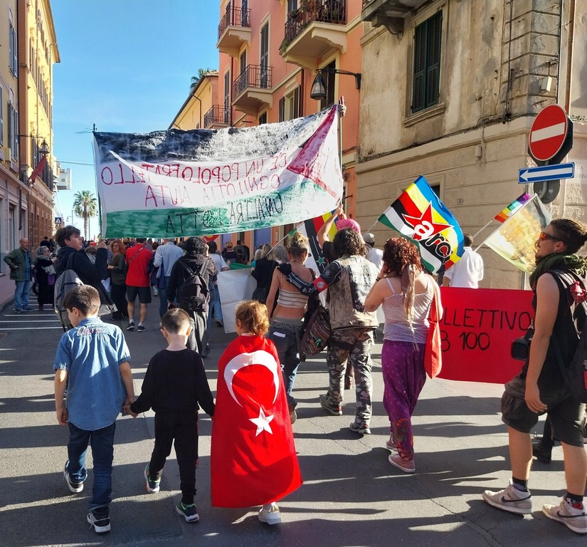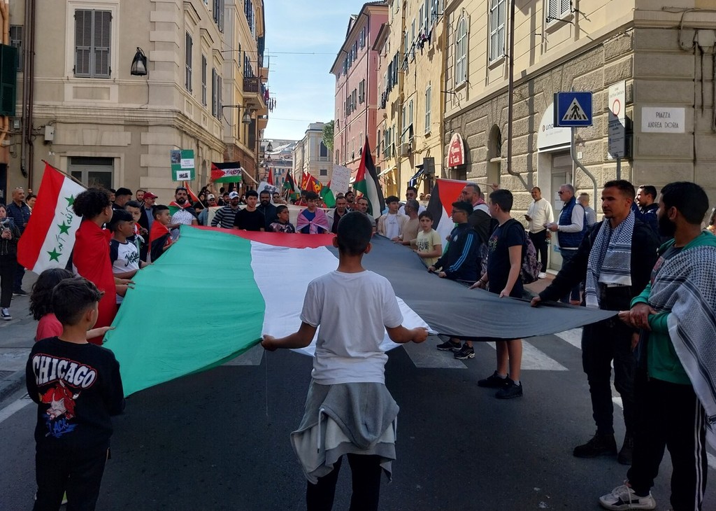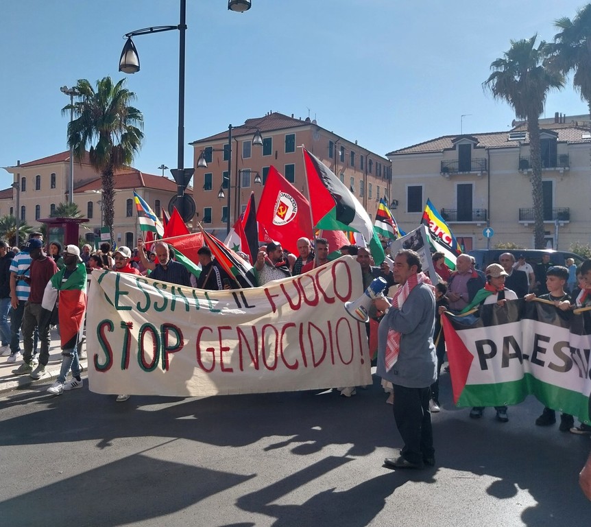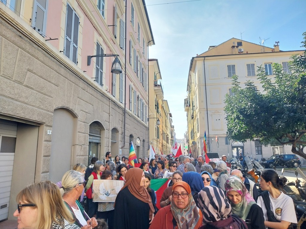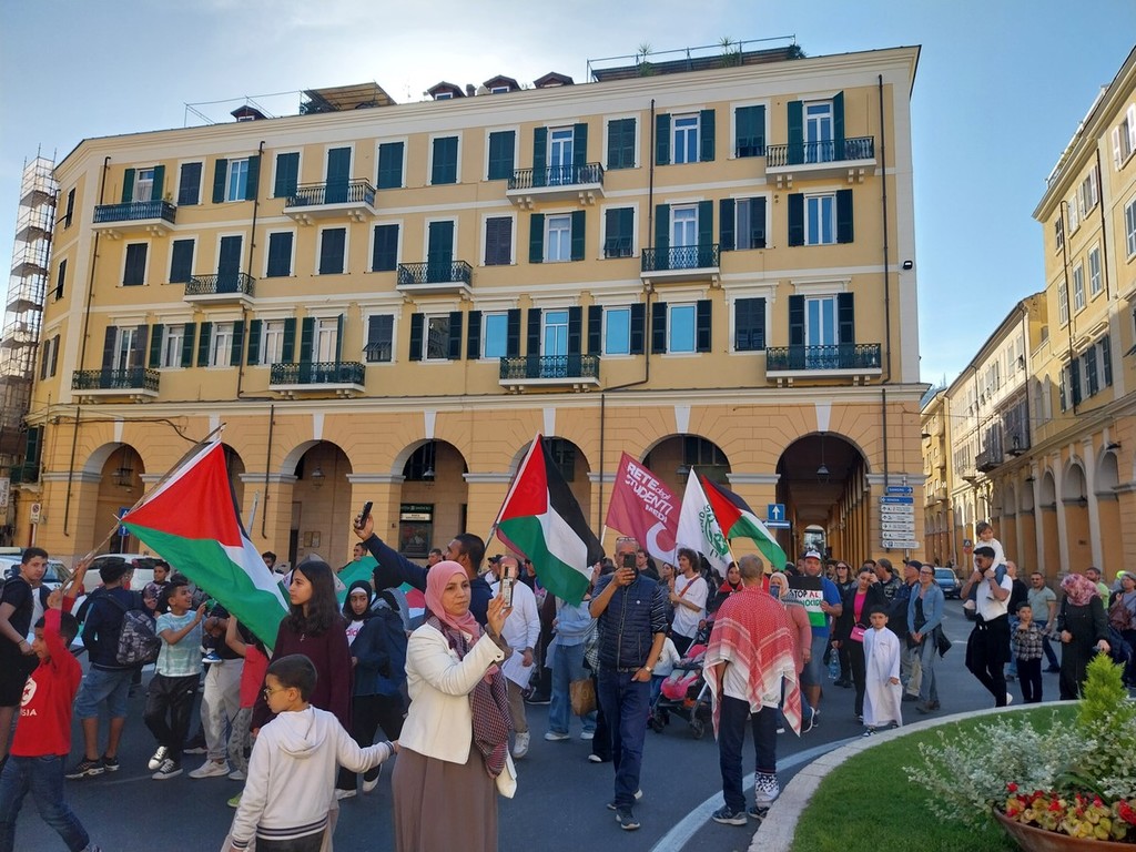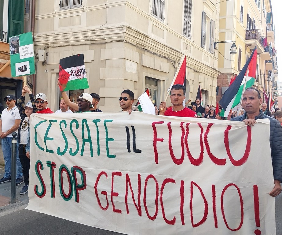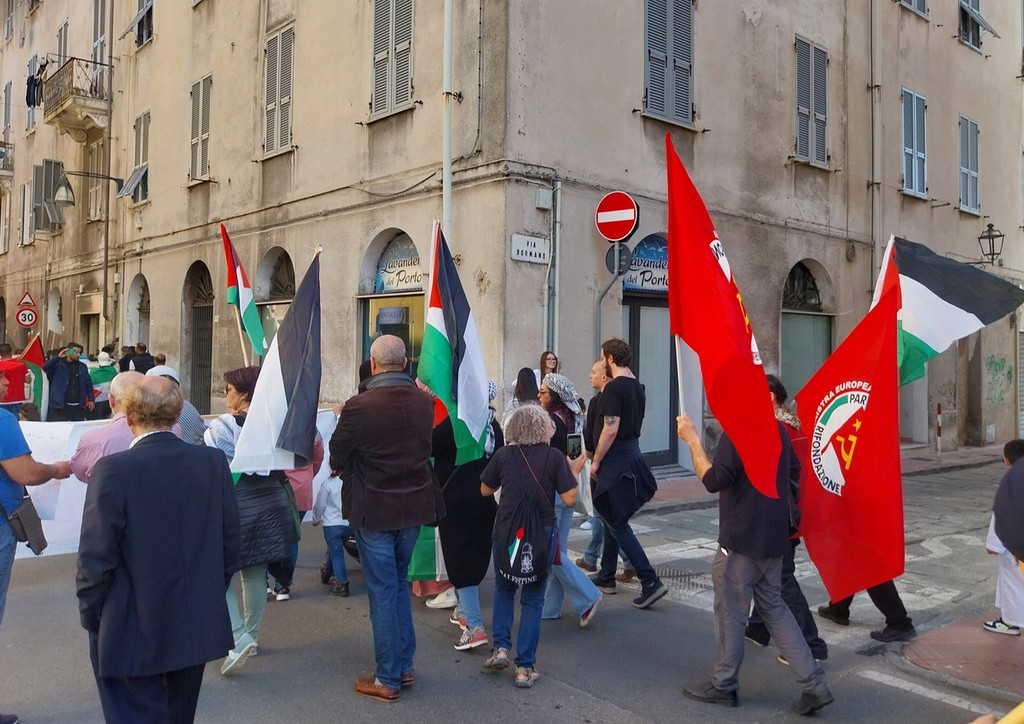 Il corteo si è snodato per le vie centrali di Oneglia, al grido “Palestina libera” e “Pace subito”, una manifestazione a cui hanno aderito trentasei realtà del territorio tra associazioni culturali, religiose, di volontariato e partiti politici.