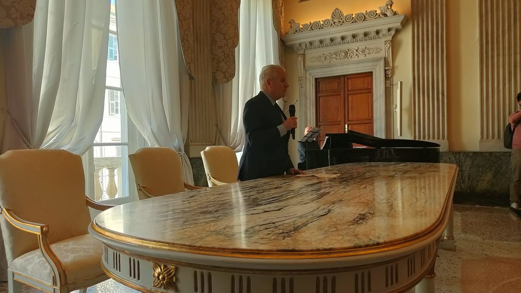 "Sono soddisfatto. È difficile restaurare così bene. Sono state bravissime le architette, sono state bravissime le maestranze in ogni particolare. Queste illuminazioni che rendono ancora di più l’atmosfera, le tende che abbiamo messo identiche a com’erano nel progetto che abbiamo visto nell’archivio di Stato, quando si progettò questo lavoro che era la sala del consiglio comunale di Porto Maurizio".