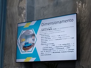 Infine, altro punto affrontato è stato l’ospedale unico. Dai dati riportanti durante la seduta la struttura sarà un DEA di I livello, conterrà 618 posti letto e le seguenti attività: pronto soccorso, blocco operativo (almeno 7 sale operatorie), blocco endoscopico (almeno 5 sale endoscopiche), blocco parto (almeno 5 sale parto/travaglio e 1 sala operatoria), diagnostica per immagini: 3 TAC, 2 RMN, 4 sale angiografiche, 2 acceleratori lineari, 4 diagnostiche radiologiche, 4 ambulatori ecografici, 3 mammografi, 2 Moc, un'area di laboratorio dotata di laboratorio di patologia clinica, laboratorio di microbiologia, anatomia patologica, centro trasfusionale.