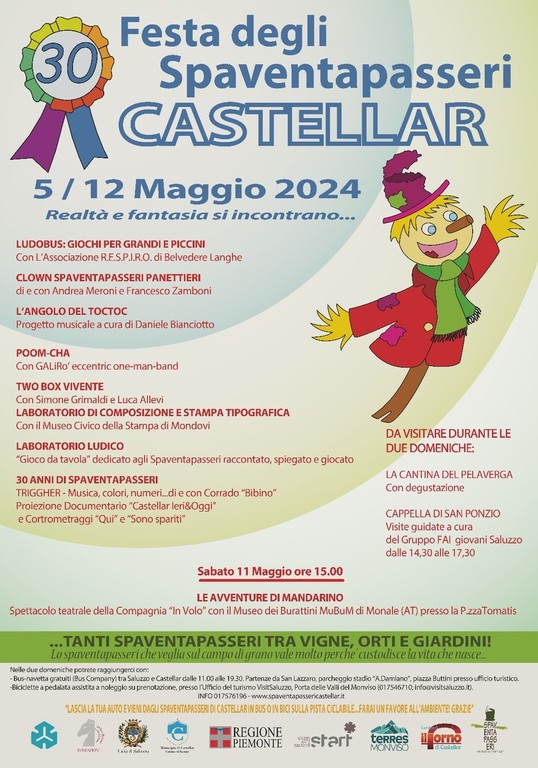 Da non perdere, durante le giornate di festa, la visita alla Cappella di S.Ponzio guidata dal Fai giovani di Saluzzo, e la visita alla cantina del Pelaverga, vino tipico del territorio. Castellar, un mix perfetto di storia, arte, cultura, tradizioni e divertimento, vi aspetta dunque con i suoi fantastici Spaventapasseri!