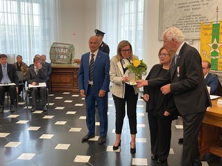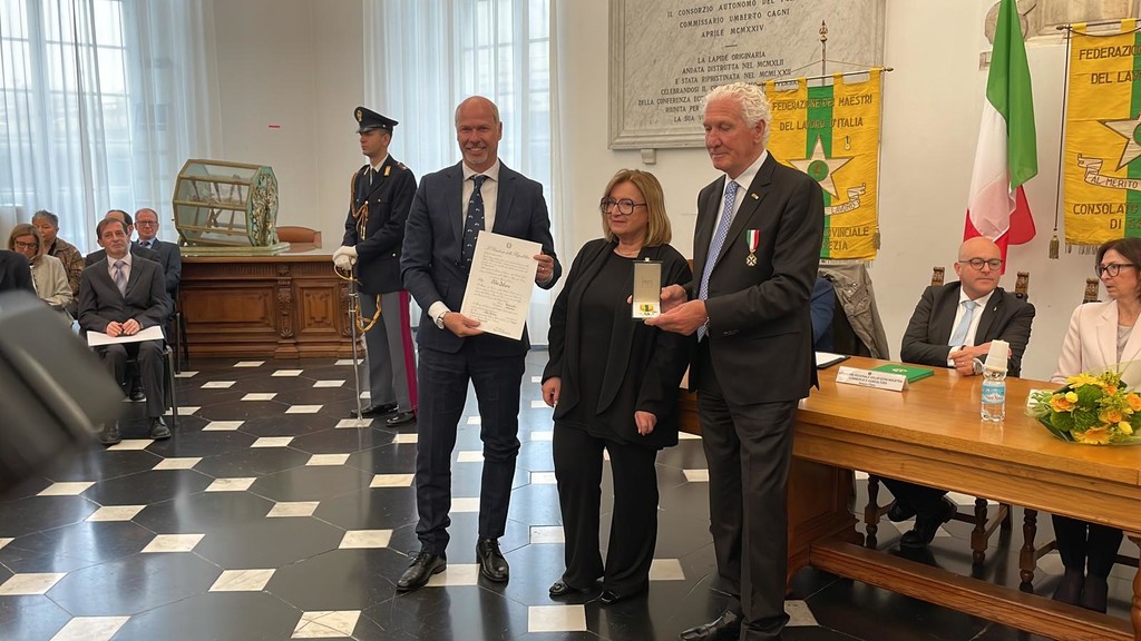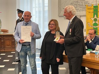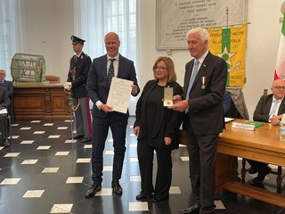 Il sindaco di Marco Bucci, il prefetto di Genova Cinzia Torraco e, per la nostra provincia, il prefetto vicario Rosa Abussi e il console provinciale Salvatore Napoli hanno assegnato le onorificenze ai 5 nuovi Maestri del Lavoro della provincia di Imperia. Si tratta di: Mirella De Andreis di Sanremo, dipendente Confartigianato Sanremo; Lorenzo Azuni di Imperia, dipendente BPM Banco Popolare Milano di Sanremo; Aldo Falsone di Imperia, dipendente di Rete Ferroviaria Italiana di Savona; Giovanni Novello di Bordighera, presidente Cooperativa Coseva di Camporosso; Antonio Stilo di Arma di Taggia, dipendente Azienda Floricola Viglietti Sergio di Sanremo.