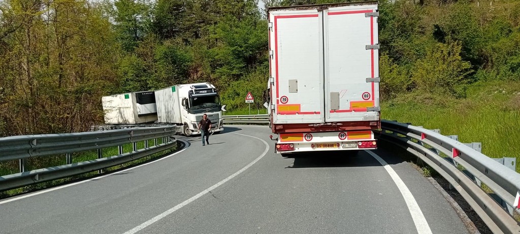 Statale 28, traffico bloccato per tir in avaria (foto e video)