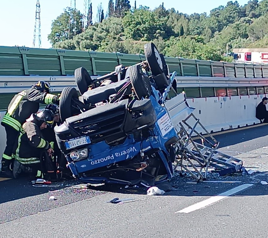 Incidente stradale in autostrada tra gli svincoli Imperia Est e Ovest: camioncino urtato da una vettura si ribalta