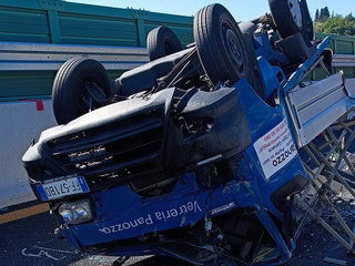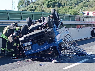 Incidente stradale in autostrada tra gli svincoli Imperia Est e Ovest: camioncino urtato da una vettura si ribalta