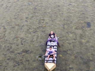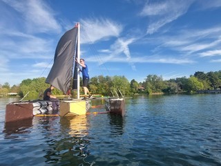 La zattera è frutto dell’ingegno e dell’impegno di Carlo e Gabriele, che hanno trasformato fusti di birra e altri materiali riciclati in una struttura che si distingue per la sua sostenibilità ambientale. Il lavoro artigianale di Carlo e le sue abilità nella saldatura e nell'assemblaggio hanno dato forma a una zattera robusta e funzionale. Gabriele, focalizzandosi su design e concetto, ha guidato il processo creativo, garantendo che la zattera non solo rispondesse ai requisiti funzionali, ma incarnasse anche un'espressione tangibile di sostenibilità. L'uso di materiali di recupero non solo riduce l'impatto ambientale, ma testimonia anche la possibilità di creare soluzioni innovative partendo da risorse già esistenti. Un mezzo che diventa un vero e proprio simbolo di impegno per un mondo più sostenibile.