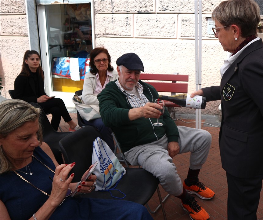 Al termine grandi applausi per tutti i partecipanti: all'autrice, Maria Luisa Alberigo, al presentatore, Claudio Porchia, al produttore Marco Temesio ed ai sommelier Fisar, Ivano Brunengo e Danila.