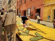 La realizzazione del tappeto di petali, lungo centoventi metri e largo quattro e mezzo, richiede almeno tre mesi di lavoro, come testimoniato dal servizio sui preparativi pubblicato da La Voce. Sono necessari almeno un milione di petali, ma anche rami, foglie e fondi di caffè.