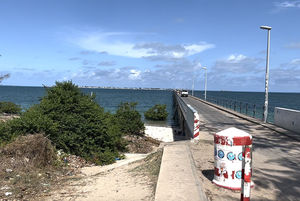 Nizza > Addis Abeba> Nampula con Ethiopian Airlines e dopo circa 10 ore finalmente “Africa”, fantastico ! Arrivati ci rendiamo subito conto di essere in un paese molto povero e con una grande disparità sociale ed economica; le strade sono asfaltate solo in centro, la miseria si percepisce agli angoli delle strade ma le auto di lusso e i centri commerciali non mancano. La sensazione è quella di un nazione in via di sviluppo ma non per tutta la popolazione, si tratta comunque del sesto paese più povero al mondo. Cerchiamo una SIM per il telefono, così da avere internet sempre a disposizione e raggiungiamo un hotel in centro per la notte. Nampula è una città ricca di “botteghe” che vendono qualunque cosa e le strade sono occupate da ambulanti improvvisati; propongono dalle scarpe alle carriole, per continuare con sigarette sciolte e frutta fresca. Dopo una serata in un american-bar con annesso karaoke cinese, così da rimanere in tema di contraddizioni, pianifichiamo lo spostamento verso la nostra vera destinazione. Mattino presto trasferimento in bus verso la costa per raggiungere “Isola di Mozambico", l’antica capitale; dopo quasi 6 ore arriviamo a Lumbo, un piccolo villaggio con un mercato del pesce molto caratteristico e tanta polizia. Dal 1960 un ponte ad una sola corsia alternata collega l’isola alla terra ferma; un’opera d’ingegneria notevole per via della sua costruzione quasi a pelo d’acqua, un’esperienza particolare ed inaspettata.