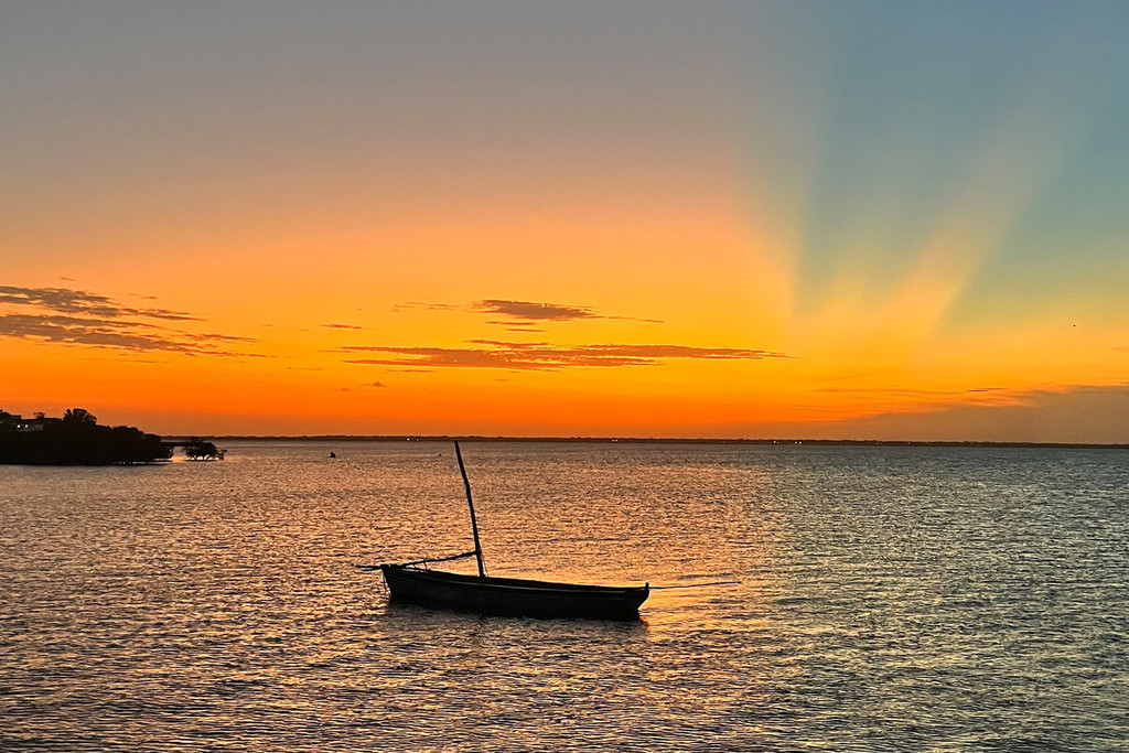 Alcuni giorni dopo decidiamo di provare l’esperienza del Dau, una piccola imbarcazione a vela tipica dell’Africa orientale; in realtà si tratta di una scafo in legno con un fusto di palma come albero maestro e tanta corda per renderlo galleggiante. Giro in barca molto emozionante lungo la costa del continente con il mio compagno di viaggio Giorgio, velista esperto, al timone in alcuni tratti; il mare è calmo e l’acqua è color turchese, le spiagge intorno di sabbia bianca sono ricche di coralli. Da quel momento in poi diventiamo un Trio perchè durante l’escursione conosciamo Espedito, un attore brasiliano che vive in Mozambico. Un uomo sulla cinquantina, nato a San Paolo e già da bambino protagonista nel mondo dello spettacolo, nella sua carriera in Brasile alterna apparizioni televisive a performance teatrali. Oggi lavora per la tv nazionale e vive a Maputo, capitale del paese; molto simpatico, di grande cultura, vegetariano da sempre e appassionato di birra. Gli incontri umani sono la vera ricchezza del paese che stai visitando perchè rendono speciale ed unico il tuo viaggio. Almeno per noi è stato così !