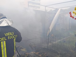 Incendio a Imperia in via del Muraglione, in fiamme scarti di potatura (foto)