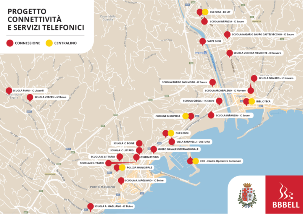 Il progetto è stato affidato dal Comune di Imperia alla BBBell, azienda piemontese, specializzata nei servizi a banda ultra-larga e nelle telecomunicazioni wireless leader nel Nord Ovest, con l'obiettivo di rispondere alle esigenze dell’amministrazione nel suo rapporto con dipendenti, cittadini e realtà collegate.