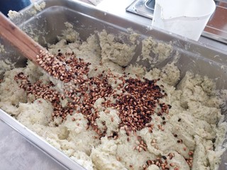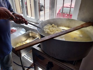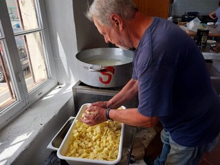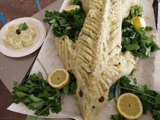Stefano Zerbone, responsabile di Ineja Food, direttamente dalla cucina della Festa, svela la ricetta: "Si fanno bollire le patate nella stessa acqua del baccalà, si 'brandano' le patate insieme al pesce e si condisce con una salsa di limone, olio, prezzemolo e aglio e infine si aggiungono i pinoli".