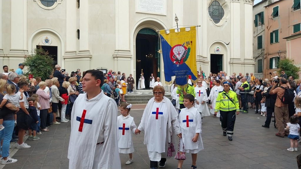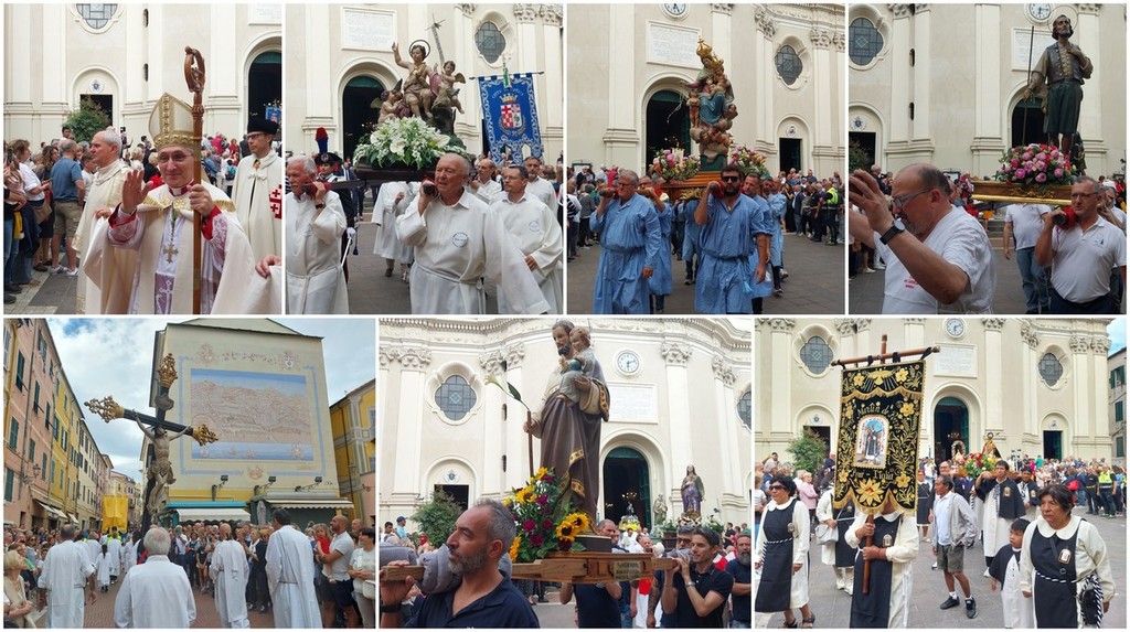Le statue dei santi e i crocifissi dalla Basilica di San Giovanni sono stati trasportati, dal clero e dalle confraternite cittadine, lungo le vie del centro storico. Ad attendere il corteo religioso centinaia di imperiese tra fedeli, devoti e curiosi.