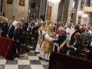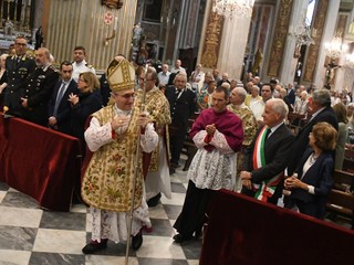 Alla messa, tra i numerosi fedeli presenti, hanno partecipato anche il sindaco di Imperia, Claudio Scajola, la vicaria del prefetto di Imperia, Rosa Abussi, il questore Andrea Lo Iacono e le autorità militari.