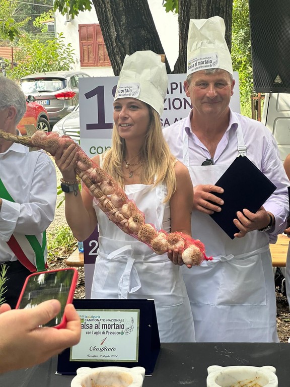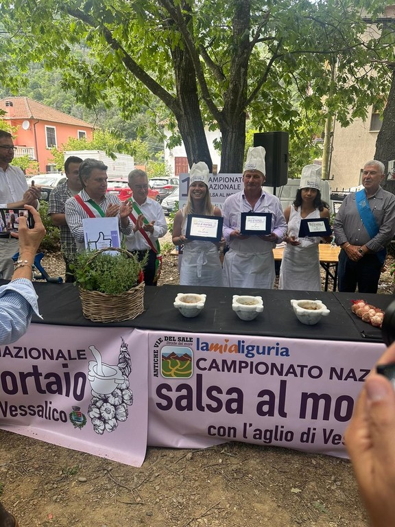Il clou dell’evento è stato però il 1° Campionato Nazionale di salsa al mortaio con l’aglio di Vessalico, che ha messo in luce non solo l’aglio di Vessalico ma anche tutti i prodotti Made in Liguria. Le salse, condite con l’olio DOP Riviera Ligure, sono state giudicate da una giuria d’eccezione: il presidente dei discepoli di Augusta Escoffier, Renato Grasso.