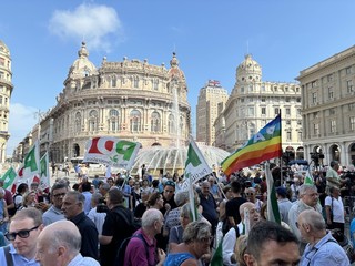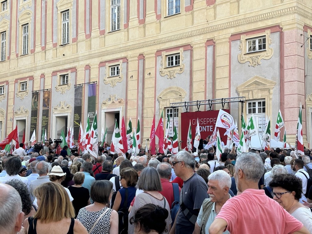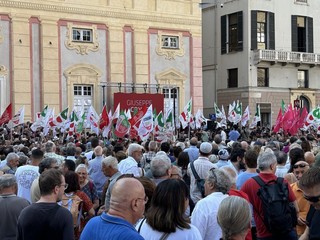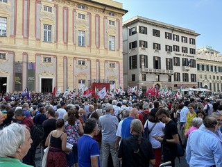 Sul palco di piazza De Ferrari sono saliti i leader del centrosinistra nazionale, da Elly Schlein (PD) a Giuseppe Conte (M5S) passando per Nicola Fratoianni e Angelo Bonelli (AVS). In piazza anche una delegazione di Azione oltre a ‘Linea Condivisa’ e ‘Lista Sansa’. Presente anche Andrea Orlando, principale indiziato per il ruolo di candidato presidente del centrosinistra alle prossime regionali.