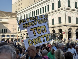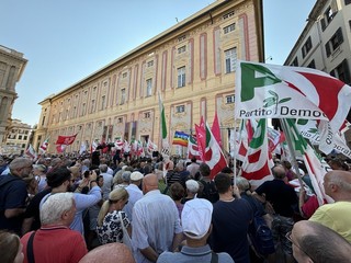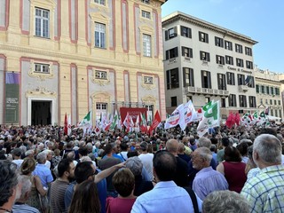 “Non siamo qui per emettere sentenze di condanna nei confronti di singole persone, non siamo un tribunale - così Giuseppe Conte, prima di salire sul palco - non c’è nessuna gogna mediatica, ma è Toti che non deve emettere una sentenza di condanna nei confronti della comunità ligure. Deve farsi da parte, non può tenere in scacco un’intera regione. Questa regione ha bisogno di investimenti in sanità, di sviluppo, di tutela dell’ambiente e di un governo regionale che sia nel pieno dei suoi poteri e delle sue facoltà e che offra soluzioni concrete. Il modello di governo regionale che emerge dalle carte che abbiamo letto non è frutto di fantasie: è un modello marcio. Non si può pensare di governare una regione incontrando amici imprenditori su yacht, o in luoghi inappropriati, e commissariando interessi privati e pubblici. Questo si chiama mercimonio, al di là dei risultati dell’inchiesta. Qui c’è da costruire un progetto politico che possa offrire alla comunità ligure la possibilità di ripartire con grande speranza, perché le aspettative sono tante. Occorre una grande fiducia e la possibilità di realizzare importanti progetti, restituendo la repubblica alla trasparenza, alla legalità e alla cura dei cittadini”.