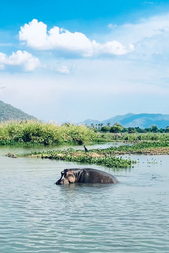 Continua l’avventura attraverso i guadi e i corsi d’acqua, dove gli ippopotami spuntano all’improvviso e regalano la magia degli spruzzi, mentre la temperatura aumenta di pari passo con lo stupore. E poi gli elefanti che si muovono indifferenti alla presenza umana, cosi diversi da quelli indiani, per via della pelle lucida e delle zanne bianchissime; animali straordinari, assolutamente pacifici che sono “i veri padroni di casa” del parco. E’ un mondo selvaggio che mi affascina km dopo km, distante anni luce dalle mie abitudini quotidiane. Finalmente vedo le zebre dal vivo, da bambino le associavo solo alla squadra di calcio della Juventus, qui passeggiano a pochi metri da me quasi in sfilata per farsi ammirare e fotografare. Forse anche in natura esiste la vanità; eleganti e bellissime nel loro contrasto di colori.
