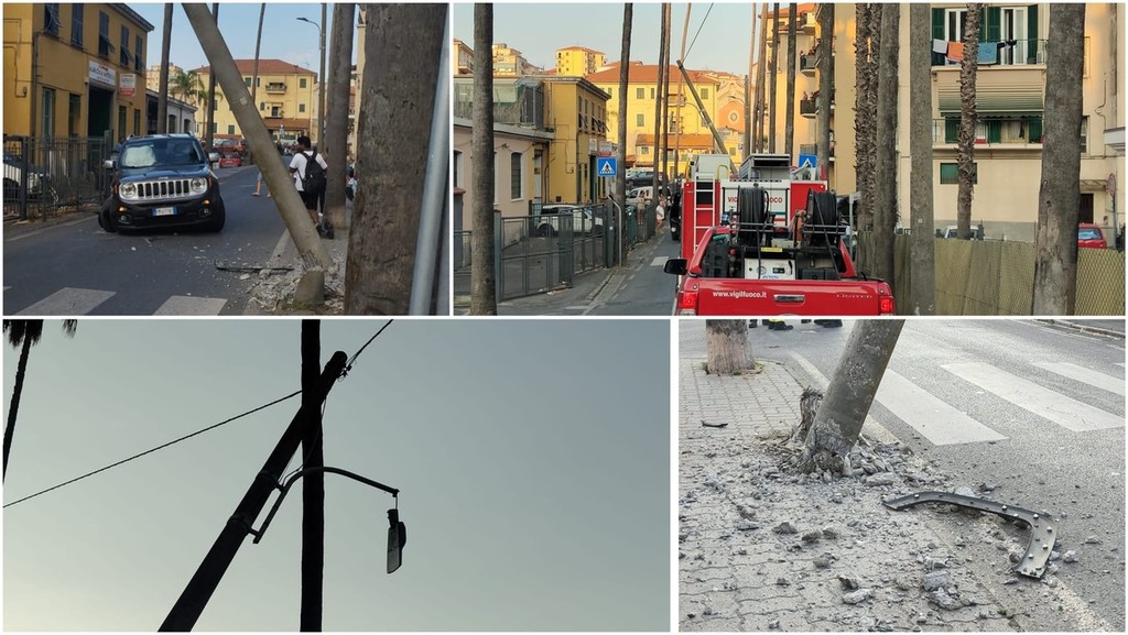 Incidente nel tardo pomeriggio di oggi in via Airenti a Porto Maurizio: una Jeep ha centrato in pieno un palo della luce, abbattendolo.