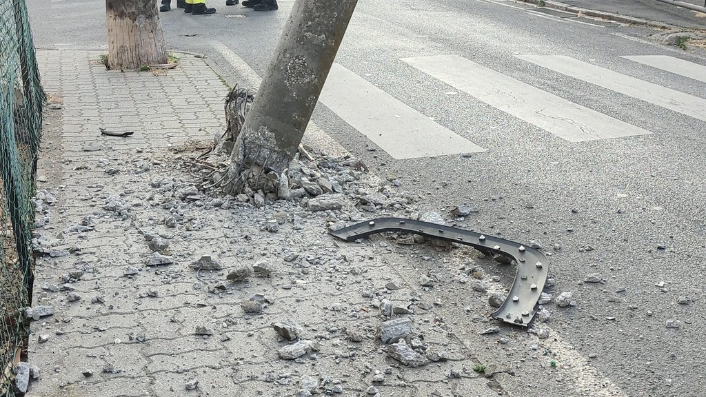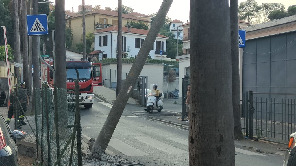 Incidente a Imperia, auto abbatte palo della luce in via Airenti (foto)