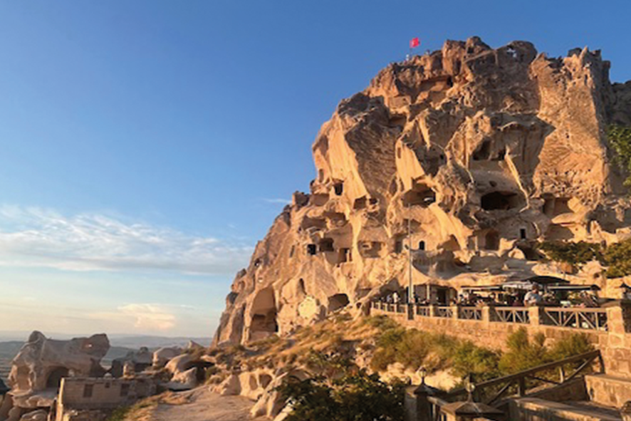 Al tramonto arriviamo ad Uchisar, la porta d’accesso alla Cappadocia. Un villaggio scavato nella roccia, dove le comunità autoctone vivevano nell’antichità; un luogo magico dalle forme sensuali, con una vista strepitosa sulla valle. Il tufo è il protagonista indiscusso in questo territorio e l’ingegneria pre cristiana da mostra di se, nella costruzione di veri è propri modelli di urbanizzazione organizzata. La sera visitiamo la cittadina di Urgup ricca di contrasti tra passato e presente. Mattino ore 5 partenza alla scoperta delle bellezze del luogo, questa volta il mezzo di trasporto è la mongolfiera. Un volo sulla storia, un’avventura meravigliosa ricca di adrenalina e di arte naturale dove : i Camini delle Fate, la Red Valley, la Valle dell’Amore, sono paesaggi da fiaba unici ed imperdibili. Un’esperienza all’alba difficile da dimenticare, in ottima compagnia; 50 minuti a spasso nel cielo azzurro in un silenzio soave, dove Madre Natura è l’attrice protagonista, in questo lungometraggio da Oscar. La giornata continua, con la visita prima al museo di Goreme con le sue chiese rupestri e poi a Zelve, dove troviamo delle grotte molto affascinanti. Al tramonto instancabili a bordo di “Quad”, lungo le strade sterrate, visitiamo da vicino “le sculture” di tufo; tra polvere e risate vorremmo stare qui per sempre, ma si sa le cose belle durano poco. In serata brindiamo tutti insieme con un calice di rosso di una cantina locale. La Cappadocia sin dall’antichità, produce un ottimo vino che oggi rappresenta anche una risorsa economica per tutta la Turchia.