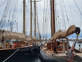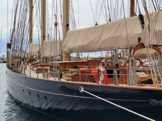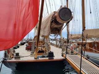 La regata transatlantica che, a quel tempo era la Kaiser Cup, si svolgeva sulle oltre 3 mila miglia di oceano ed era stata condotta da Charlie Barr, un leggendario skipper scozzese ma per tre volte vincitore dell’America’s Cup per conto degli statunitensi. Su Atlantic, e forse anche su questa replica, naviga la storia e lo spirito della vela mondiale, navigano ancora quello skipper che, la storia della vela, l’ha scritta insieme ad un altro grande mito della progettazione. Ovvero quel Nathanael Herreshoff, il genio conosciuto come il “Mago di Bristol”, progettista delle tre barche vittoriose nell’America’s Cup con Barr e inventore di attrezzature veliche usati perfino oggi nelle regate di Barcellona. La replica di Atlantic, realizzata sui piani originali, è lunga ben 69 metri, nata nel 2008 sugli scali del cantiere olandese Van der Graaf mentre l’originale è stato disegnato da William Gardner e varato nel 1903 dai cantieri americani Townsend and Downey. La goletta, dotata dell’uguale attrezzatura velica tipica dei primi anni del secolo scorso, spesso è condotta dal suo armatore, l’imprenditore olandese Ed Kastelein, in passato autore di affascinanti ricostruzioni di prestigiosi scafi classici come Te Moana, Eleonora e Zaca, la barca di Errol Flynn.