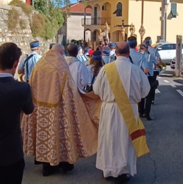 Ieri, domenica 15 settembre ad Aurigo in Valle Impero, si è tenuta la Celebrazione in onore della Madonna Addolorata, che ogni anno si festeggia la terza domenica di settembre. Al mattino la Messa solenne, celebrata dal Parroco Don Jean Pierre Vinciguerra animata dalla corale Parrocchiale, al pomeriggio i Vespri e a seguire la processione per le vie del paese con la statua della Madonna.