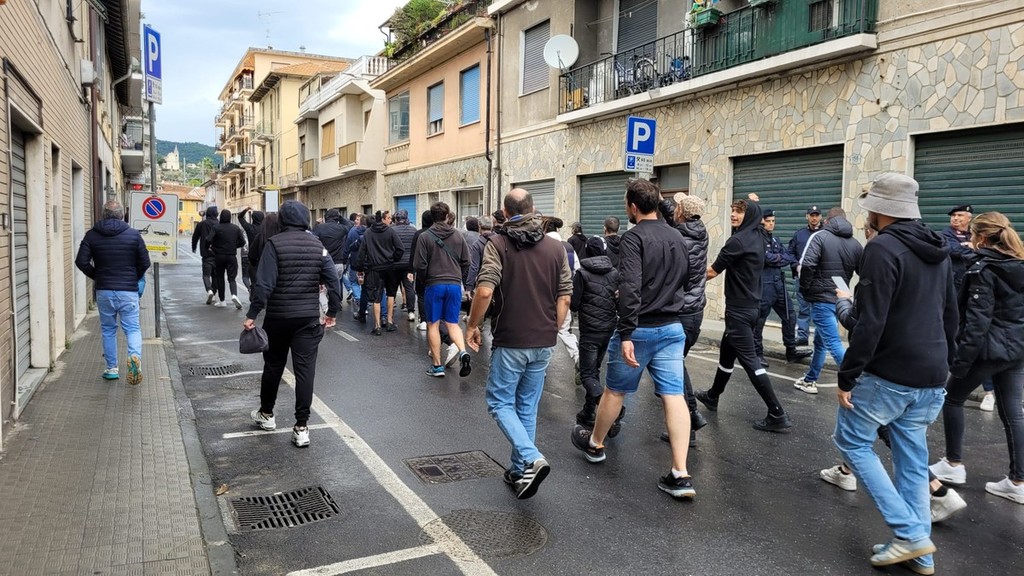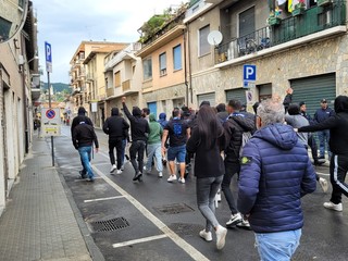 Derby, l'arrivo del pullman della Sanremese a Imperia