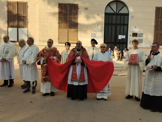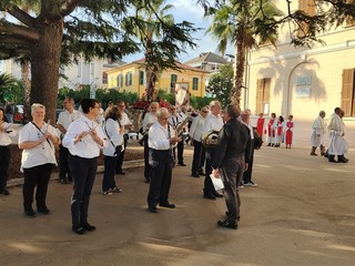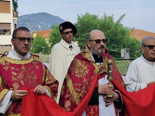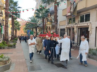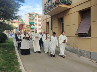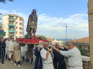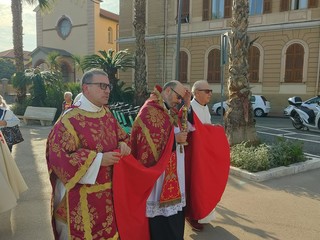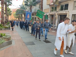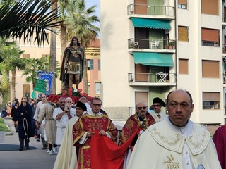 Alle ore 17, dopo la celebrazione dei Vespri, San Maurizio è uscito dalla cattedrale per cominciare il cammino che lo ha condotto in piazza Roma risalendo via XX Settembre, accompagnato dagli imperiesi e dalle note della Banda Città di Imperia.