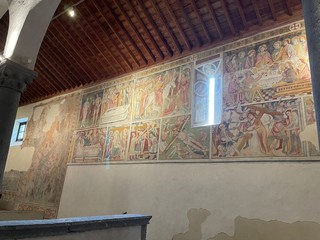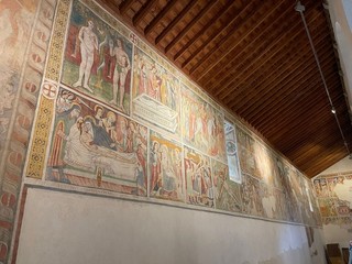 Ma vi è anche un ciclo precedente di affreschi di epoca quattrocentesca che comprende le immagini dei regni dell’aldilà. Meglio conservato, sia pur con lacune, è il riquadro dedicato alla punizione dei dannati all’inferno. Nel corso del convegno verranno spiegati nei dettagli i particolari di questi affreschi ancora ben conservati.