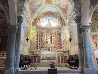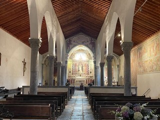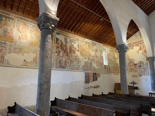 Un luogo di culto situato in una posizione appartata e suggestiva meta in diversi periodi dell’anno di turisti da ogni parte del mondo. Fu consacrato alla fine del Quattrocento e di quell’epoca esibisce il bel portico a colonne e il campanile cuspidato. Ma sono soprattutto i dipinti che fasciano le pareti all’interno a costituire il motivo di maggiore attrazione.