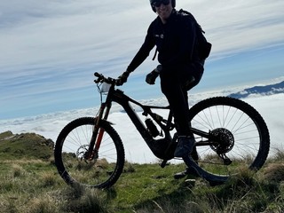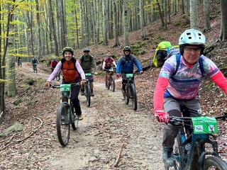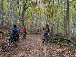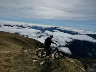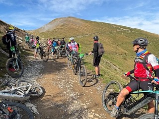 Da qui, i biker sono scesi al Colle del Garezzo (1778 m) e proseguendo hanno raggiunto il Passo di Pian Latte (1756 m), un punto panoramico con vista sul bosco di Rezzo. Scendendo sulla sterrata, il percorso ha offerto uno stupendo punto panoramico al Passo della Mezza Luna.