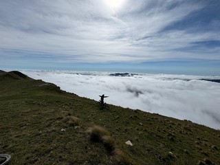 Una breve sosta al rifugio “La Terza” ha permesso ai partecipanti di riprendere fiato prima di proseguire sull’Alta via Monti Liguri. Successivamente, il percorso ha previsto il passaggio sotto il Monte Frontè (2152 m), lasciando l’Alta via Monti Liguri per collegarsi alla via “Marenca.”