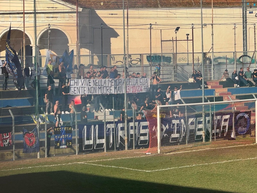 Alcuni presenti in tribuna lasciano il proprio posto anzitempo, mentre la Gradinata Nord da prima contesta duramente il dirigente, consigliere comunale di maggoranza Daniele Ciccione, poi alla fine dopo aver richiamato la squadra sotto il proprio settore termina la giornata con cori di incitamento per i ragazzi.