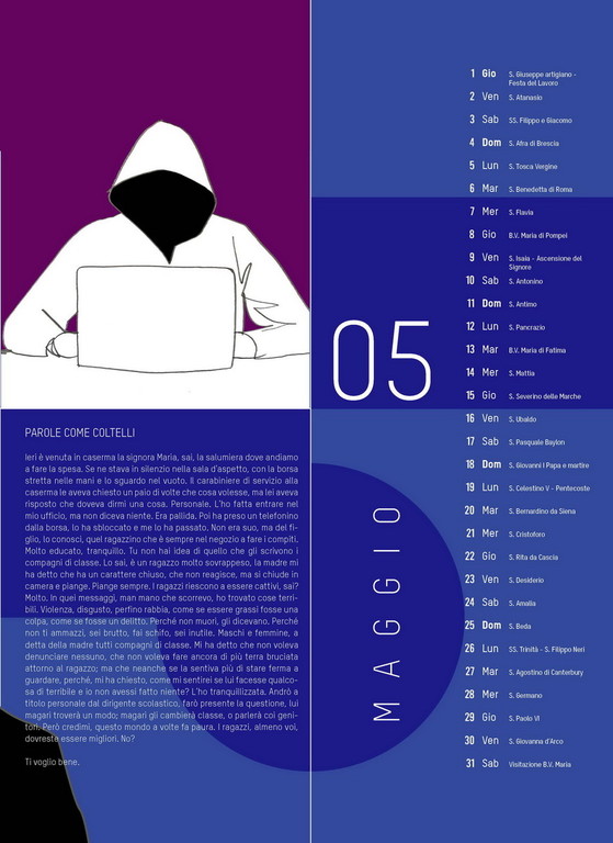 I testi che accompagnano le 12 tavole descrivono un dialogo epistolare fra un Maresciallo comandante di Stazione vedovo e suo figlio