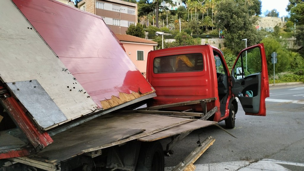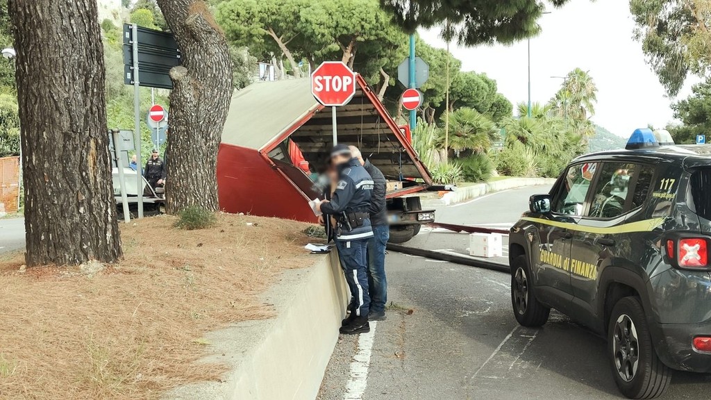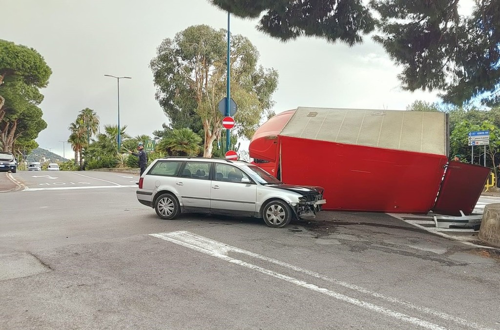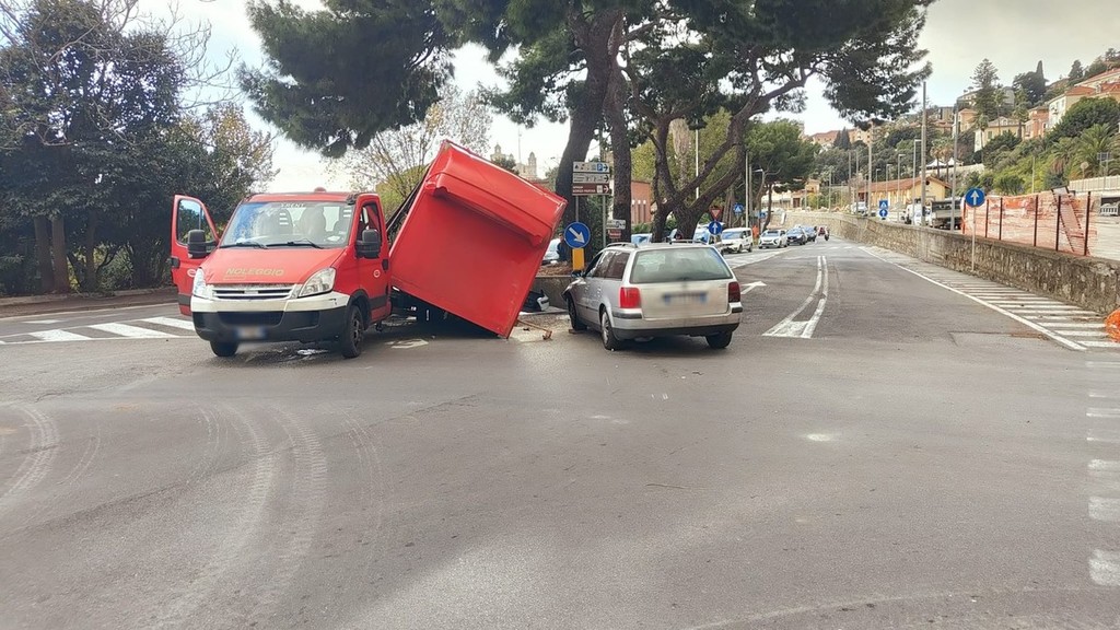 Imperia, si sgancia il cassone del rimorchio di un camion dopo lo scontro con un'auto