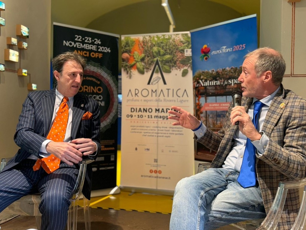 I due eventi sono stati promossi nell'ambito del meeting aperto al pubblico dal titolo “Euroflora e Aromatica, in primavera appuntamenti da non perdere in Liguria”. "Si tratta di due eccellenze del bello e del buono - ha spiegato Giusi Feleppa, Responsabile Ufficio stampa di Porto Antico SpA - per cui non è stato difficile ritrovarci per questa collaborazione". "La presenza in questa sala di Euroflora - ha ribadito il Sindaco di Diano Marina, Cristiano Za Garibaldi - testimonia la crescita di Aromatica, che è il risultato di una storia d’amore tra il nostro splendido mare e il nostro territorio. Ogni anni offriamo nuove esperienze a chi viene nel Golfo Dianese a trovarci e anche nel 2025 ci auguriamo che sarete in tantissimi". "Diano Marina è la meta principale del turismo balneare piemontese - gli ha fatto eco l'Assessore al Turismo, Luca Spandre - e siamo felici di essere venuti qui a promuovere la nostra città, il suo territorio, le sue eccellenze".