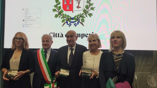 Conferiti, questa mattina, nella sala consiliare di Palazzo Civico gli ambiti Premi i Premi San Leonardo-Città di Imperia. I riconoscimenti, assegnati dal Comune insieme al Circolo Parasio sono stati assegnati a Giacomo Raineri, Livia Carli e Roberta Ramoino. "E' ormai una tradizione -commenta il sindaco Claudio Scajola-, il premio consegnato nel giorno in cui festeggiamo il Santo Patrono, individuato nel 1991 come tappa ulteriore dell'unificazione della città. Premiamo persone che con la loro vita hanno illustrato il valore di crescita della nostra città".