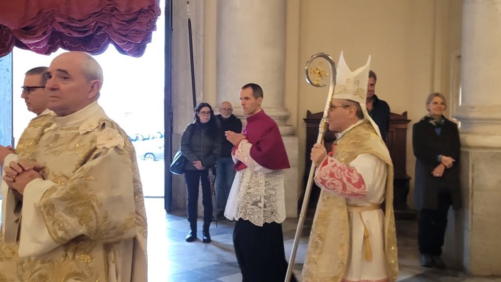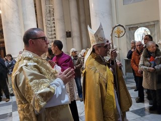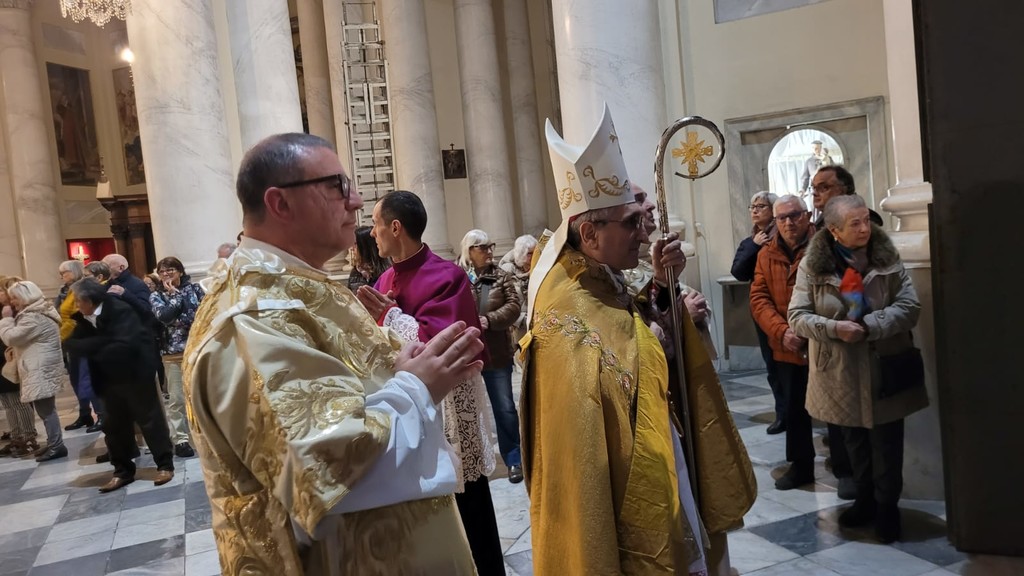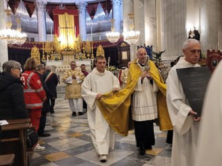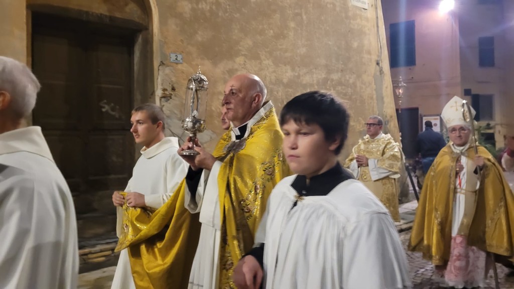 Santa Messa officiata dal vescovo della diocesi di Albenga-Imperia monsignor Guglielmo Borghetti nel Duomo di Porto Maurizio oggi pomeriggio per celebrare il santo patrono San Leonardo alla quale è seguita la processione.