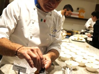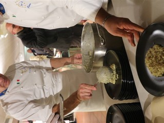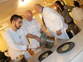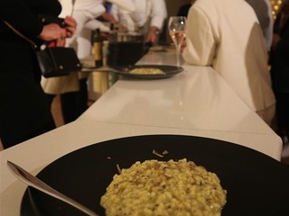 Il riso, mantecato in diretta di fronte al pubblico, ha catturato l'attenzione degli ospiti, che sono rimasti letteralmente affascinati dal gusto e sapore intenso del piatto. In apertura della serata, lo chef Valter Ferretto, rappresentante piemontese di Euro Toques e da oltre 35 anni stella Michelin, aveva deliziato i partecipanti con i migliori salumi e formaggi delle Langhe, insieme a preparazioni gustose come la battuta al coltello e l’uovo tartufato.