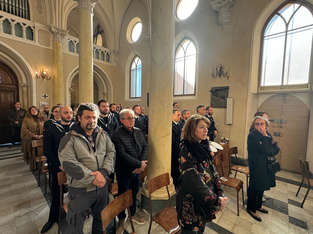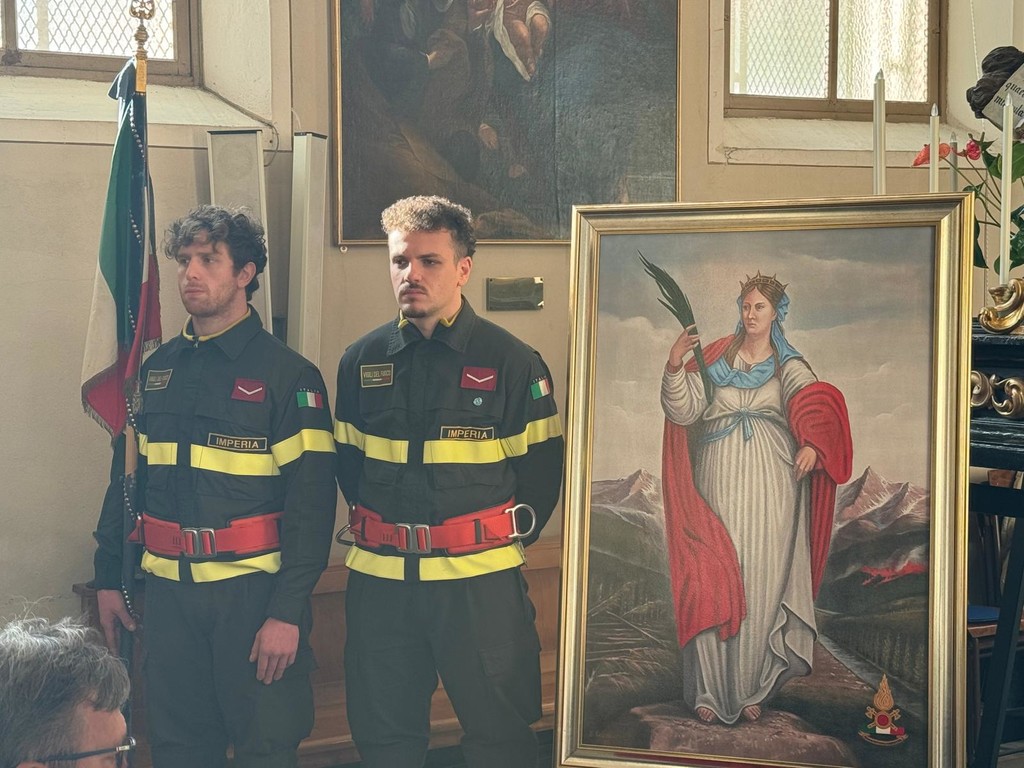 A seguire la celebrazione religiosa, nella chiesa Ave Maris Stella di Borgo Marina con la messa celebrata dal vescovo della diocesi di Albenga e Imperia, Guglielmo Borghetti, che ha visto unito il personale dei vigili del fuoco con quella della capitaneria di porto.