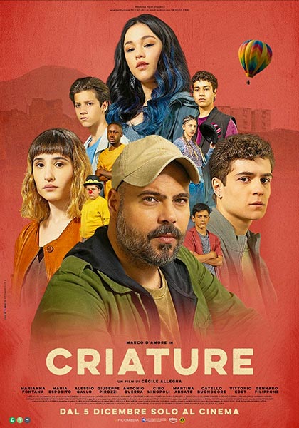 - CRIATURE – ore 15.45 – di Cécile Allegra - con Marco D'Amore, Marianna Fontana, Maria Esposito, Alessio Gallo, Giuseppe Pirozzi - Drammatico – “Mimmo Sannino, un tempo insegnante ora impegnato come educatore di strada a Napoli, si dedica al recupero di ragazzi in dispersione scolastica per riportarli sui banchi di scuola, e permettergli di ottenere il diploma di terza media. Il suo mezzo di predilezione è l'arte circense così, tra lezioni sui trampoli e letture del Barone Rampante, e grazie anche all'aiuto di Anna, assistente sociale che riconosce il valore del suo impegno, riesce a coinvolgere i giovani anche se il suo operato non è ben accolto dalle famiglie del quartiere e dalla criminalità organizzata...”