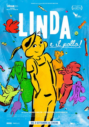 - LINDA E IL POLLO (cineforum) – ore 16.15 - 20.15 - 22.30 – di Chiara Malta, Sebastien Laudenbach - Animazione - "Linda ha pochi anni e una grande ossessione per l'anello di smeraldo di sua madre, che vorrebbe indossare a casa come a scuola. Ingollato una mattina dal suo gatto viola, è accusata ingiustamente di averlo rubato e scambiato con un baschetto giallo. Linda non nega e si becca una bella punizione. Ma poi il gatto vomita l'anello con la verità e la mamma di Linda, Paulette, vuole farsi perdonare. In cambio la bambina esige ‘pollo e peperoni’, l'ultimo piatto che le ha cucinato il suo papà prima di morire, a tavola, improvvisamente, traumaticamente. Uno sciopero generale complica il desiderio di Linda ma Paulette è pronta a tutto per trovare quel pollo e cucinarlo come promesso. Un intero quartiere finirà coinvolto nella rocambolesca ricerca di un volatile che è la chiave di un ricordo perduto...”
