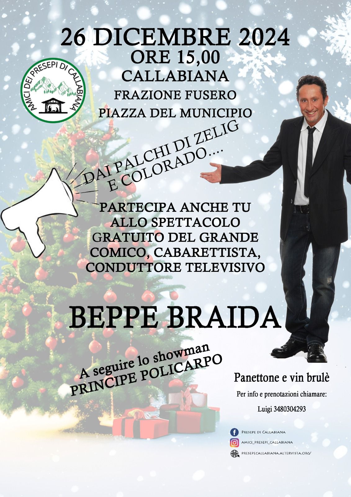 Per il giorno di Santo Stefano (26 dicembre) dalle 15:00 è stata organizzata una festa nella piazza di Fraz. Fusero Callabiana (BI), per la quale è stato invitato a sorpresa un famoso comico.