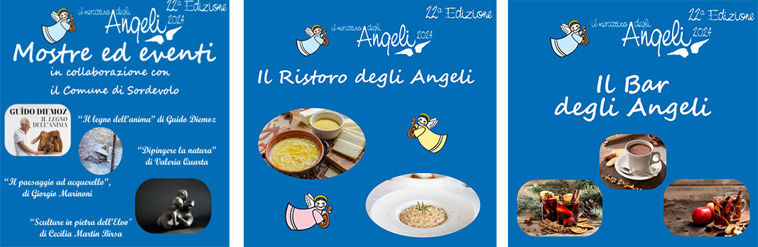 Giunge quest’anno alla sua ventiduesima edizione lo storico Mercatino degli Angeli di Sordevolo, il grande evento che, anche quest’anno, annuncerà per primo l’arrivo del Natale sul territorio biellese. L’edizione 2024 si terrà nelle domeniche: 10, 17 e 24 novembre e 1, 7,8 e 15 dicembre. Tante novità per l'edizione 2024, con il ritorno in centro paese e il Ristoro degli Angeli nella sede degli Alpini.