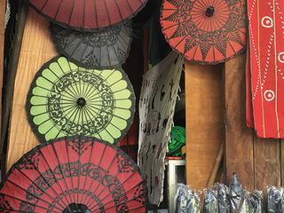 I mercati in Birmania sono tra le esperienze più autentiche da vivere. C’è qualcosa di magico nel camminare tra le bancarelle, dove si vende di tutto. Ogni oggetto, ogni frutto, ogni spezia aveva una sua estetica, una bellezza che sembrava pensata per sedurre l’occhio. I prodotti erano disposti con una perfezione incredibile, come se si trattasse di un’esposizione o una mostra d’arte. E poi le stoffe, le trame, i colori, rappresentavano una sinfonia per i sensi. Non mancavano poi le piccole meraviglie: ombrellini dipinti a mano, oggetti in legno scolpiti con maestria per raccontare una tradizione che non si trova facilmente altrove. La cosa che mi ha affascinato di più, però, è stata la simpatia dei venditori. Un’interazione che fa parte del mercato, che lo rende vivo, vibrante. Ho comprato delle teste di Buddha scolpite, dei piccoli oggetti che mi ricordano, ancora oggi, la bellezza di quel luogo. Mi piace pensare che i mercati che ho visitato fossero un angolo di vita autentica, dove il vero spirito della Birmania si faceva sentire in ogni gesto. Non ricordo di aver visto animali vivi in vendita, e ne sono felice.